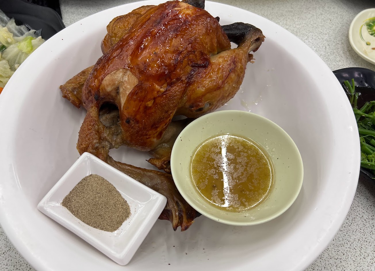 雞肉皮薄酥脆 肉質鮮嫩多汁 搭配沾上雞油與胡椒鹽 真的是一番好風味 一開始我們還擔心兩人吃不完 啃食過程中 還不停稱讚這雞 不知不覺中 就完食了 服務 內用 餐點類型 午餐