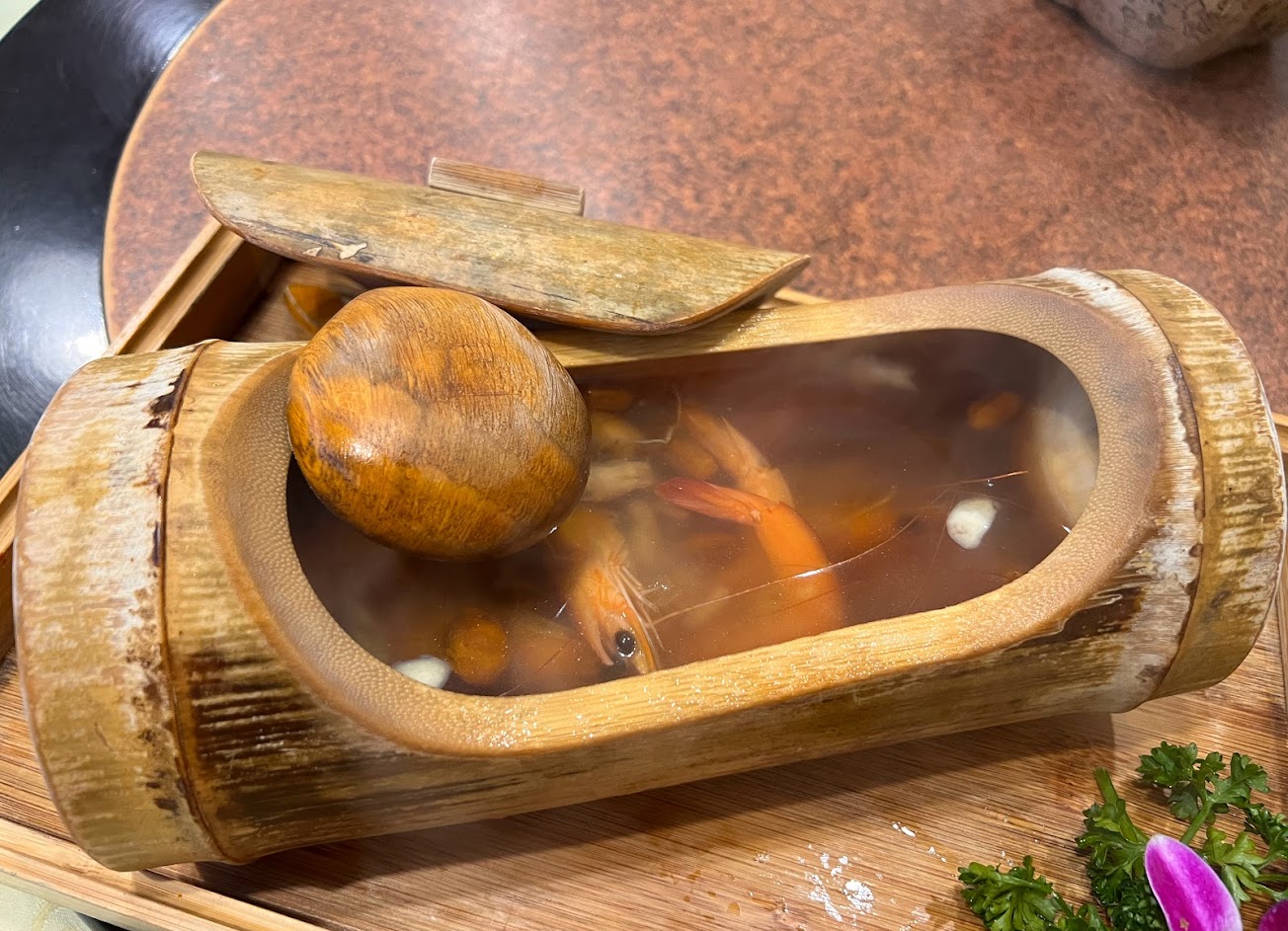油鷄表現較普通,半天筍或玉蘭花苞炒(不太確定記的對不對)都不錯! 竹筒蝦則非常可口!大推!