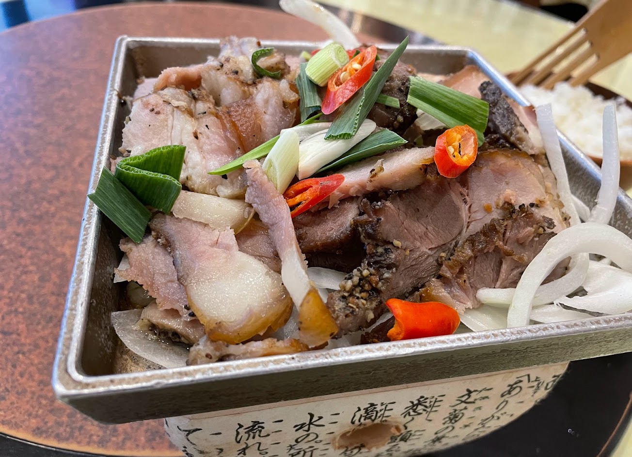 點了陶板烤醃豬肉,果然對了,因為後來發現每個桌上都必點這個。我先生一個人吃光光,應該是非常美味。還點了山蘇炒破布子,山蘇是燙過再炒的,不油,不辣還是好吃。