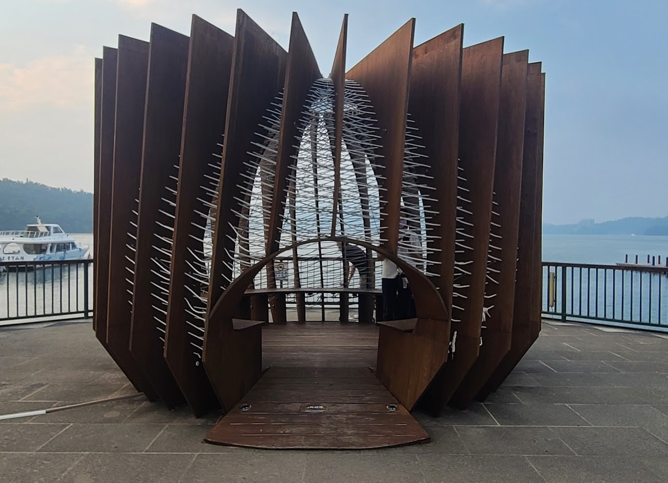 延伸到湖中的涼亭 造型很好 風景好美喔 周邊就是小吃聚集的伊達邵 好吃好逛好買