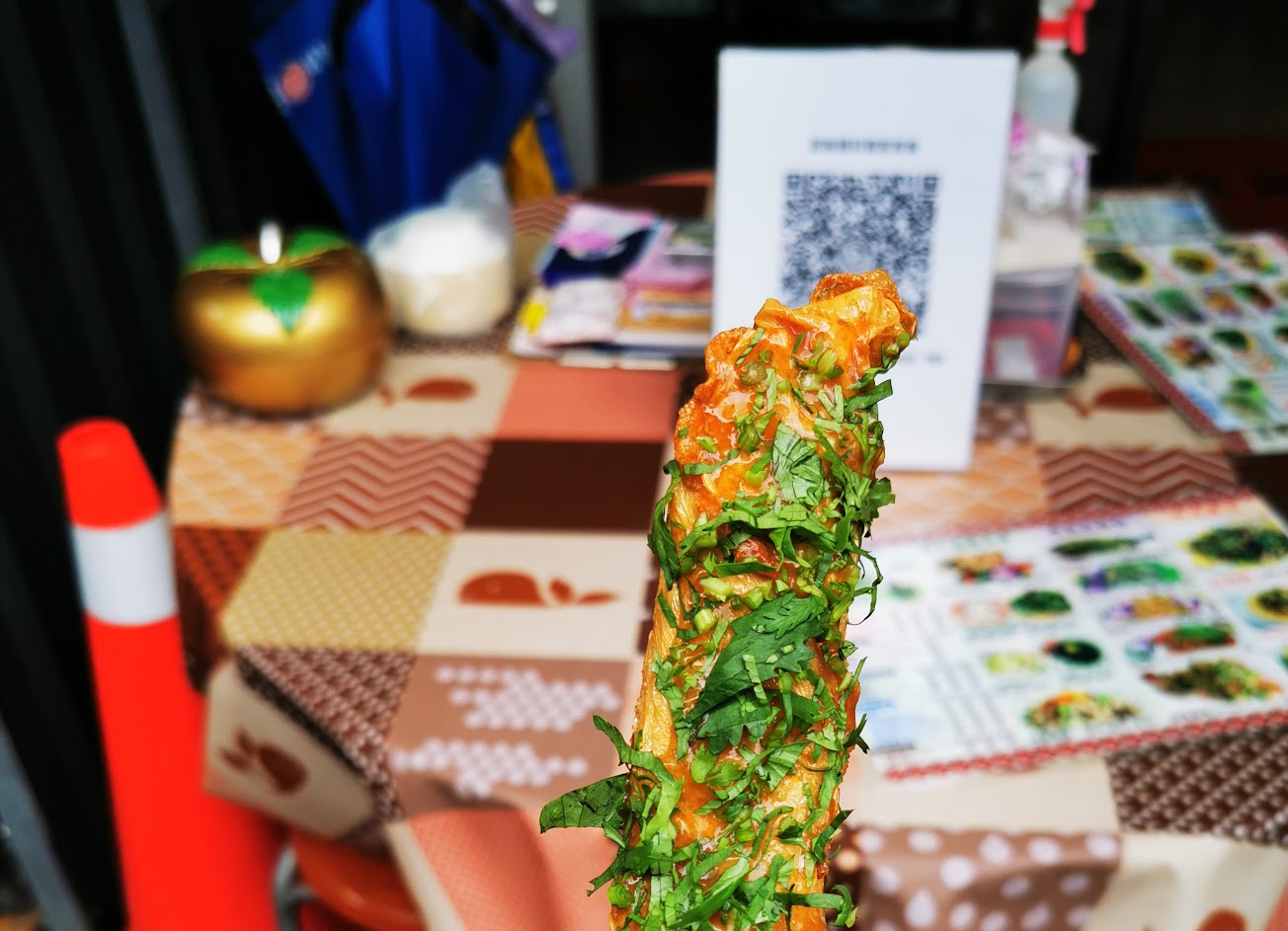 總統魚酥卷 台灣其他地方幾乎沒看過的總統魚,這間店的生意很好,需要排隊(但個人覺得很值得)其實動作不算太慢,很快就輪到了,除了有總統魚還有蔥肉的口味,買兩卷以上可以切,只買一隻就只能插著了,吃起來很酥脆,非常建議熱熱的吃口感會比較好,店家的醬汁味道很剛好,不會搶走魚肉的味道,炸的也很好吃,魚肉的鮮甜美味還是吃得到的,上面還撒上大量的香菜,吃起來有蠻濃的香菜味,搭配魚肉的感覺真的很美味,雖然一支50元好像有點小貴,但我覺得十分值得!好吃?