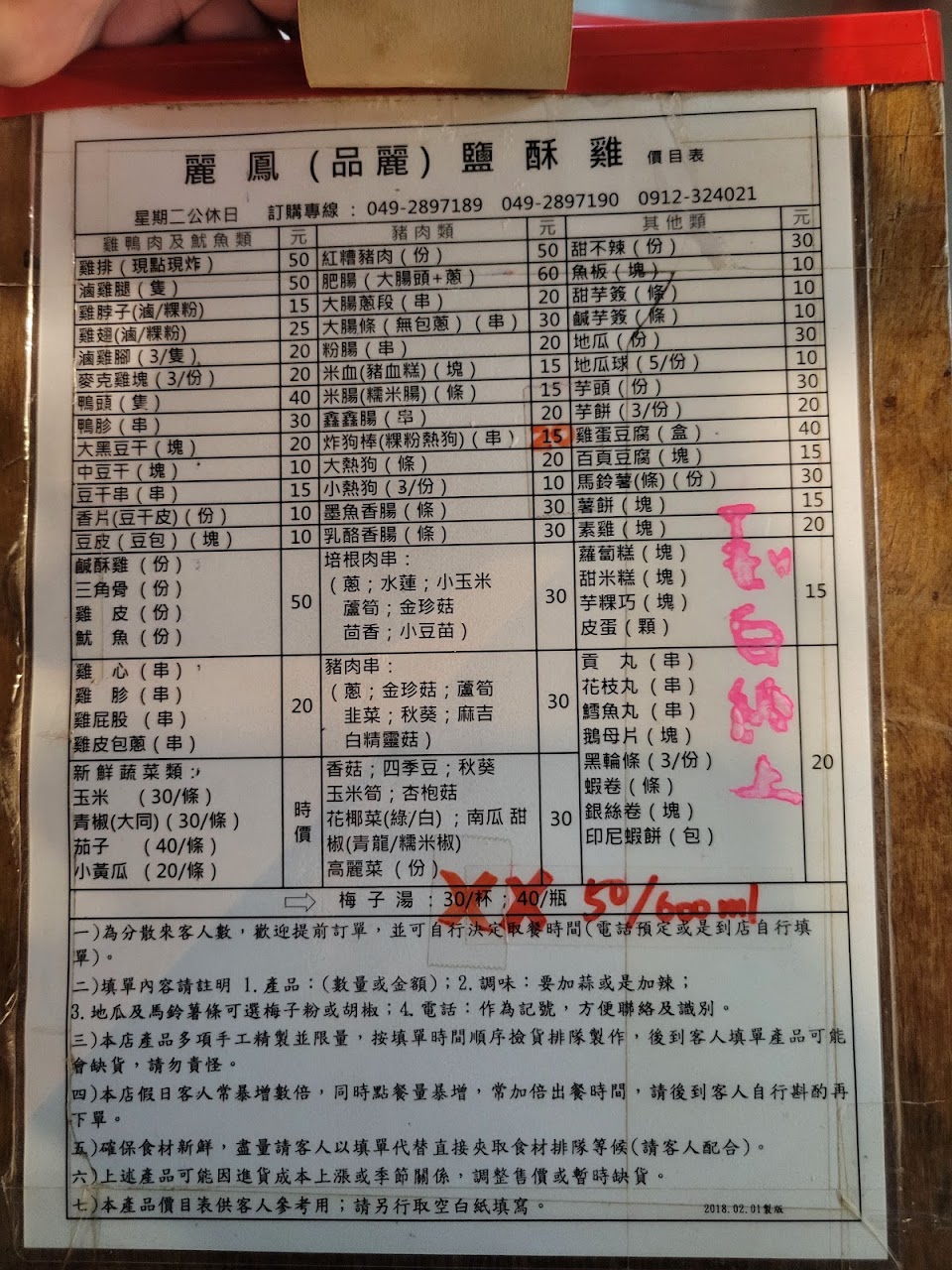 人氣很高的鹹酥雞店,提前一天做好下單功課,當天中午11:30開放預約,立刻打電話!