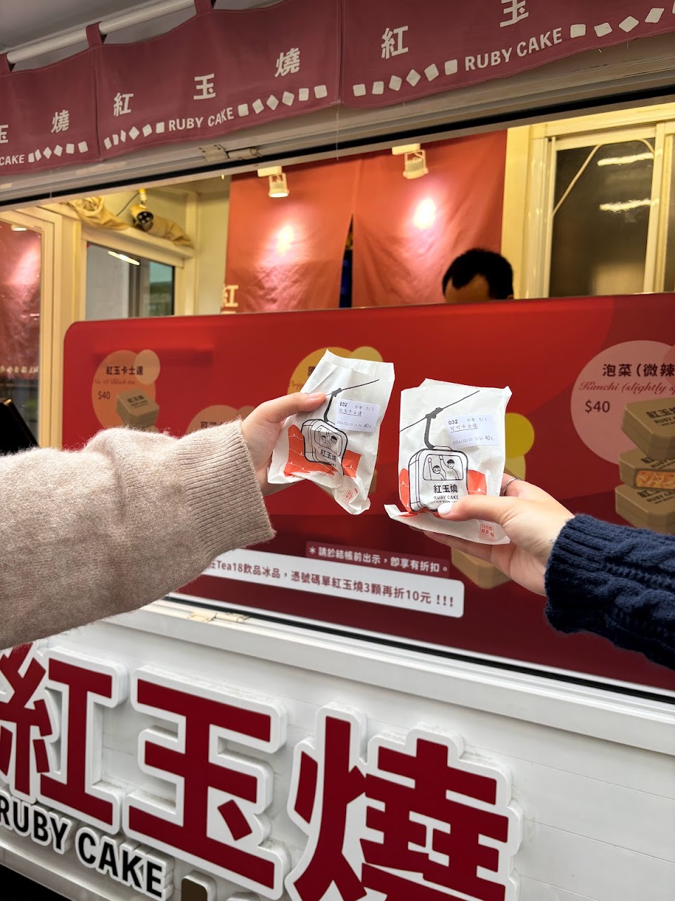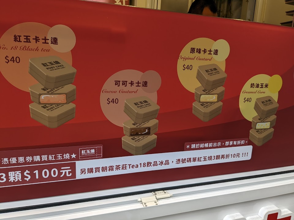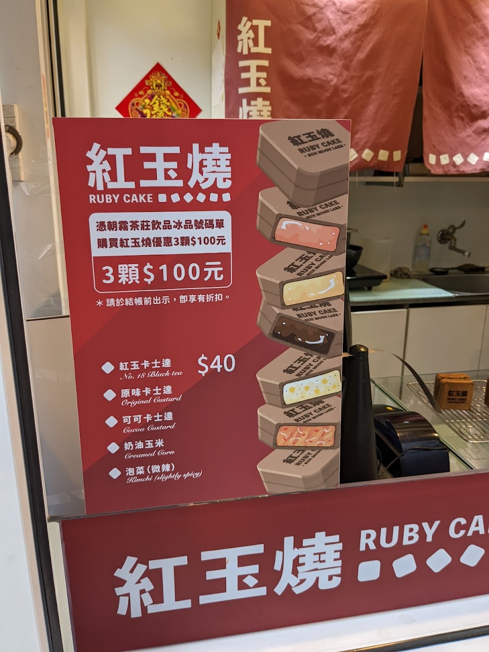 店員說像是紅豆餅,覺得吃起來介於雞蛋糕和紅豆餅之間,皮比一般紅豆餅厚以及鬆軟,紅玉茶香夠,卡士達奶味也有出來,搭配起來像是奶茶,不過有點結塊比較可惜