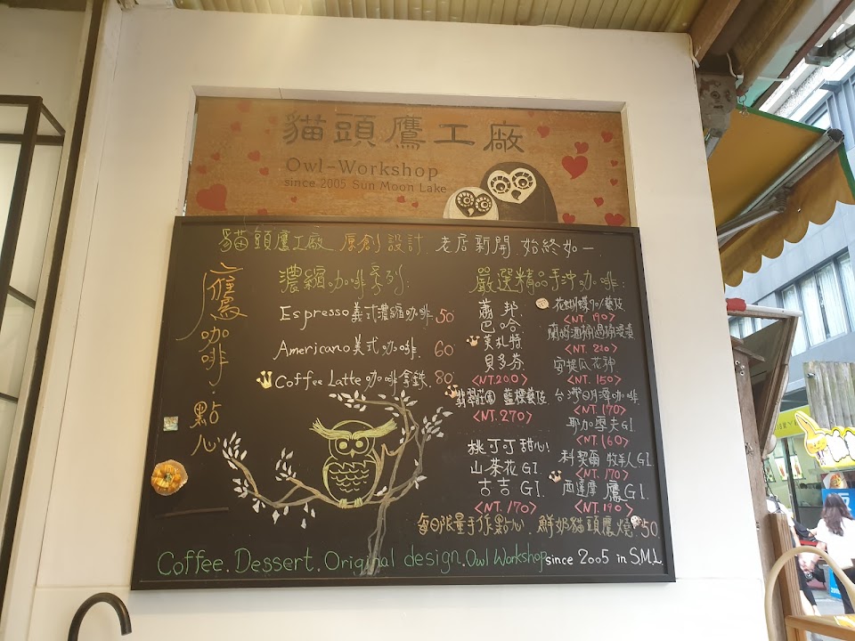 在小時候記得日月潭有一間專門賣貓頭鷹的店,現在改裝變成咖啡店還有賣一些貓頭鷹相關商品,原本以為貓頭鷹工廠不見,原來是轉型了????