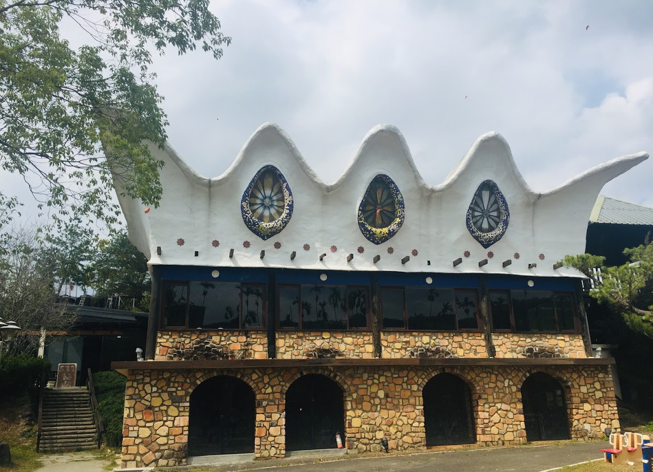 餐廳門口前方涼亭內有一個很大的菸灰缸。