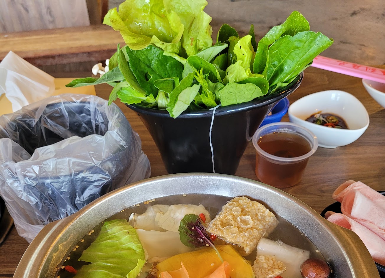 而且附贈的菜盤真的超級新鮮(青江菜,地瓜葉,大陸妹,水蓮,白精靈菇菇……等)