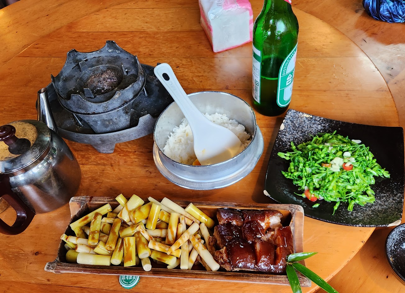 菜品十分下飯,烏龍茶雞、鮮筍控肉、甜菜、山豬肉、洛神花茶、拔絲地瓜都不錯