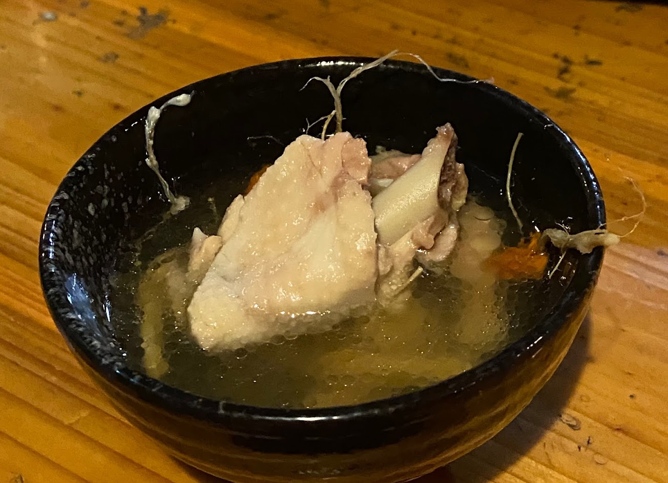 雞很嫩,肉質Q彈 口味特殊,招待的拔絲地瓜外酥內軟不黏牙。 假日人多,地點有點偏遠,人卻不少,是個熱鬧的私房餐廳。
