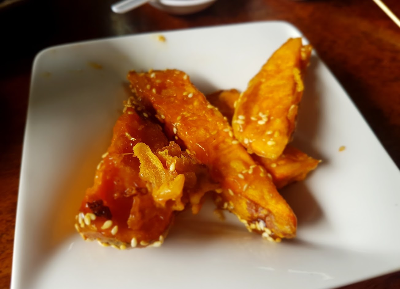 鱘龍魚湯是好喝的,拔絲地瓜也好吃外表很脆