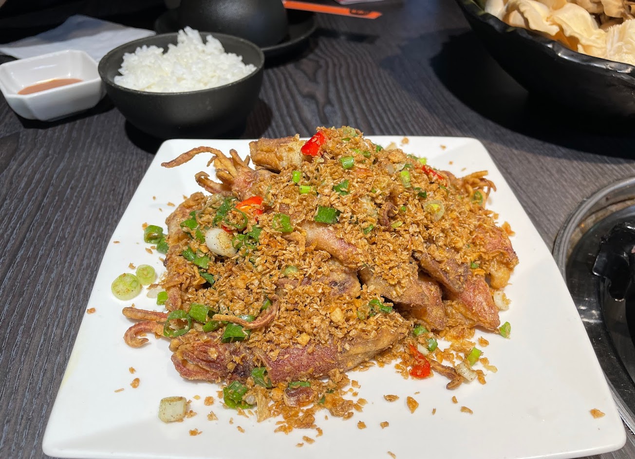 只有兩個人點了烏骨雞,湯內菇類很豐富,但雞肉口感很軟爛,吃到第二塊,友人默默的說:有沒有覺得很像料理包…..,沒記錯的話一鍋是快一千塊,覺得肉質真的很普,但打包之後回家煮稀飯很好吃?