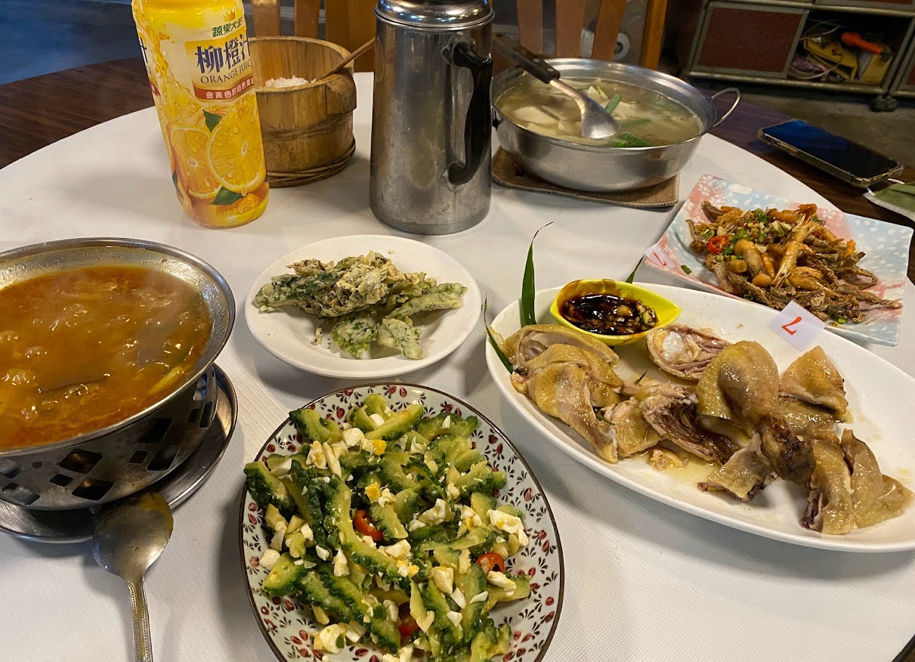 平日晚上4大2小去用餐,沒什麼人,吹著涼涼的風,享受山野間的寧靜,非常舒服,點了白斬雞、高麗菜、溪蝦魚雙拼、炒山蘇,竹筍排骨湯、拔絲地瓜,每道菜都好吃,外面的空地還有提供車宿。下次值得再訪。