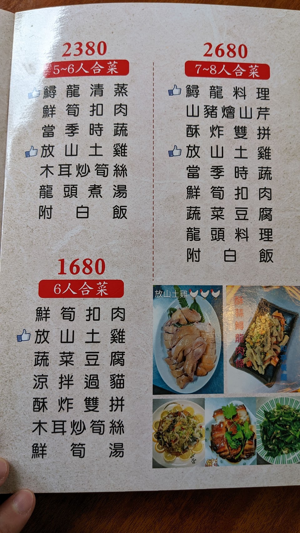 事先預定2680的合菜,到現場被告知我們的白斬雞「被偷拿走了」所以要用三杯雞替代,傻爆眼!菜色口味普通,只有清蒸鱘龍魚很好吃很新鮮,怕下次再來雞又要被偷,不敢再來了