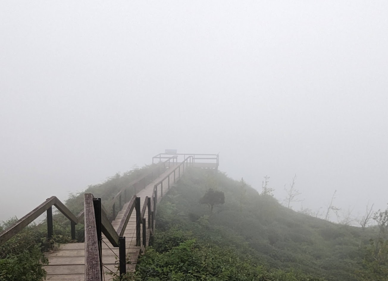 需要走一段步道上去,當天十一點就碰到大霧,只看見附近茶園