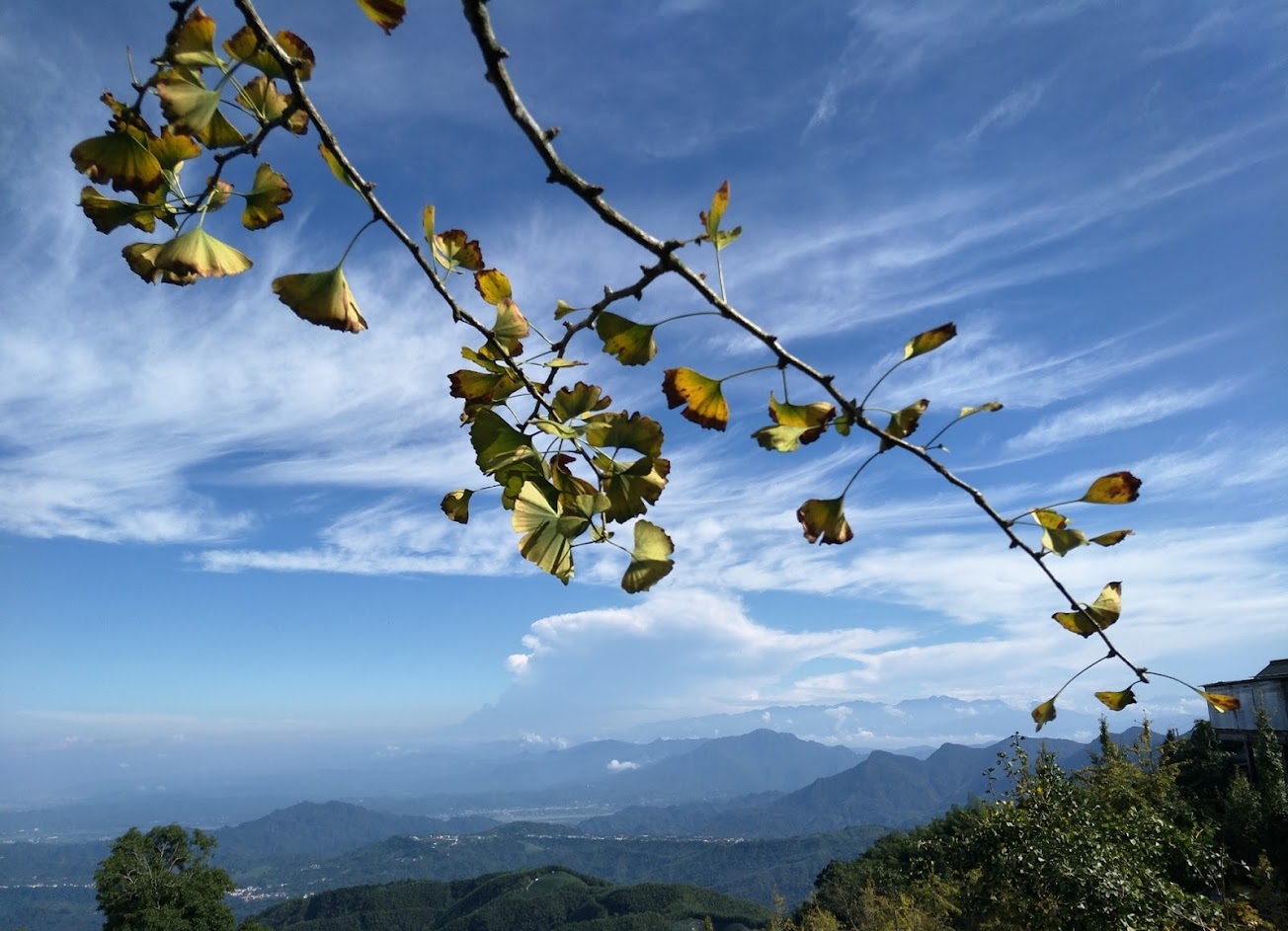 滿滿茶園&銀杏樹, 入秋天涼,銀杏葉已變黃。 山上看雲起雲落,每分每秒的變化。