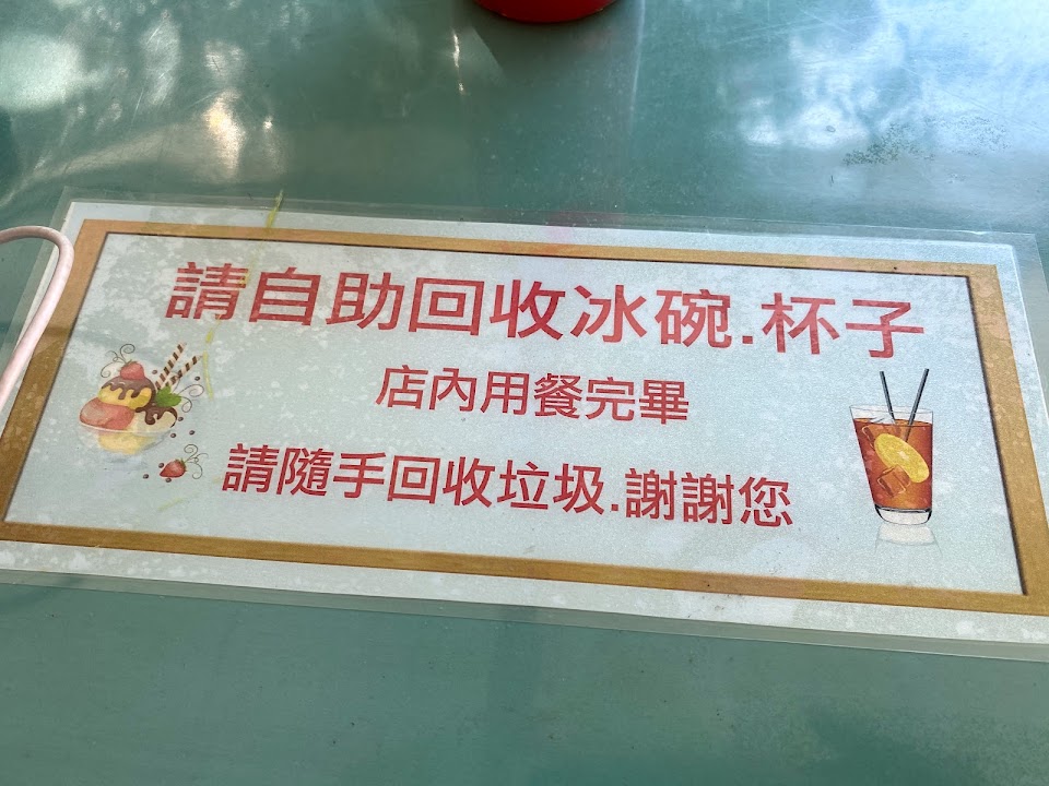 用料實在的水果冰跟 紅豆牛奶冰~美味消暑!還有可以自選料的傳統剉冰!但是要自助回收的廚餘冰品跟回收桶就在座位旁亂放,有礙觀瞻⋯⋯
