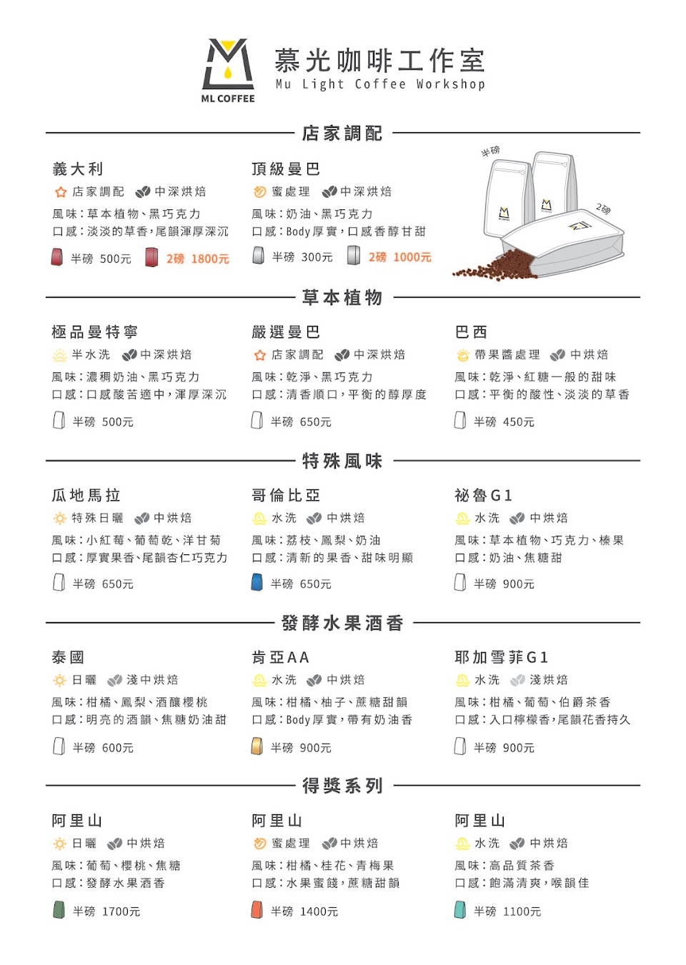 2024最新在地推薦餐廳的菜單_ML coffee 慕光咖啡工作室 I 自家烘焙 I 精品手沖咖啡 I 蛋糕甜點 I 熱壓吐司的菜單、圖片