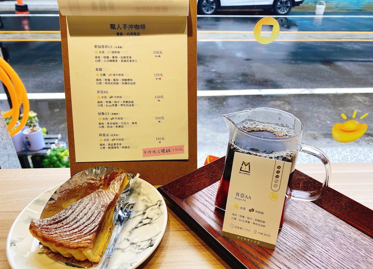 仿手沖咖啡非常好喝,味蕾不是特別敏銳的我都喝得出每種咖啡豆的香氣與滋味,正努力解鎖菜單上的每種咖啡?甜點每一樣都好吃,尤其是可麗露、麻花捲、奶酪、餅乾,吃得出老闆對食材的用心。 …