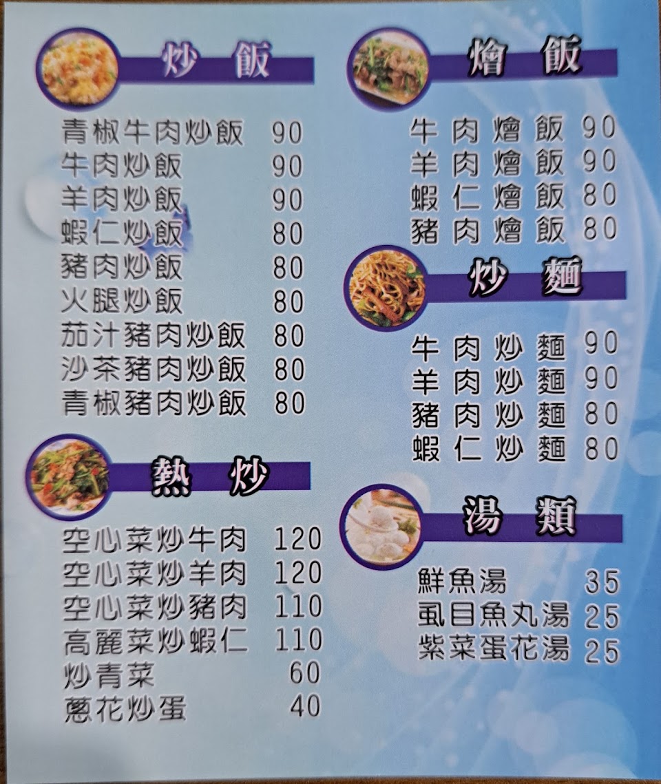 從以前就有的一家店,有賣炒飯、炒麵、燴飯,經濟實惠,週末也有營業。用餐尖峰時段人稍多,可以事先打電話預定餐點。個人喜歡炒飯跟鐵板雞排麵,整體而言算是麻魚寮好吃的店。