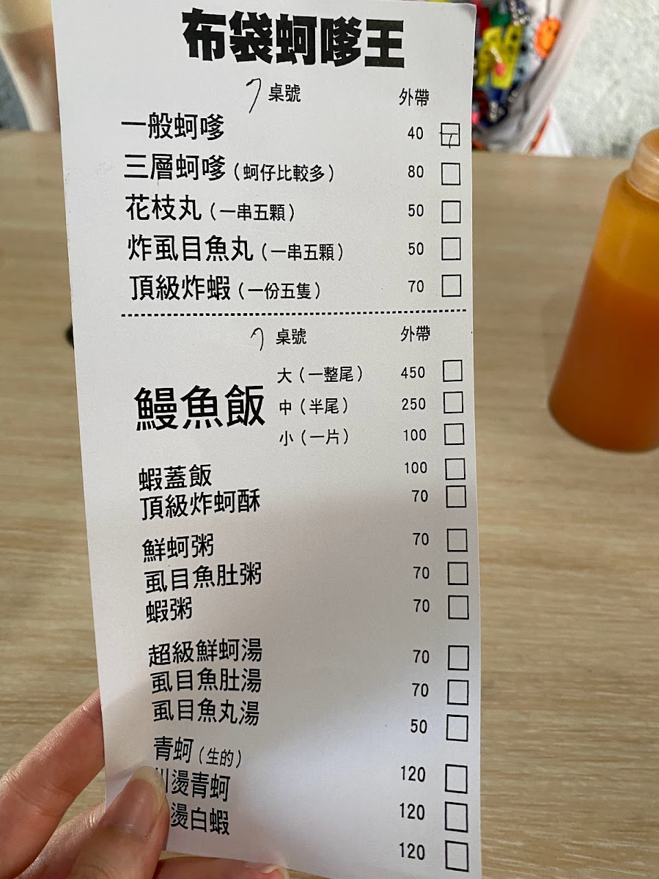 生蚵仔一盤120 小鰻魚飯100