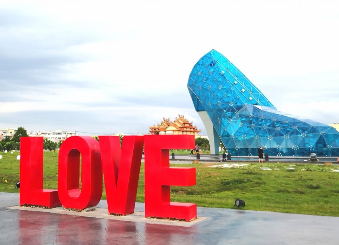 布袋港附近的景點,藍色高跟鞋是大型的裝置藝術,命名為高跟鞋教堂,並不是教堂,周遭環境有幾個附屬的設計,適合拍照打卡,綠化做得不夠,天氣好會曝曬在陽光下,草坪維護欠佳,感覺缺水,若能好好規劃維護,會是休閒娛樂的好場所!