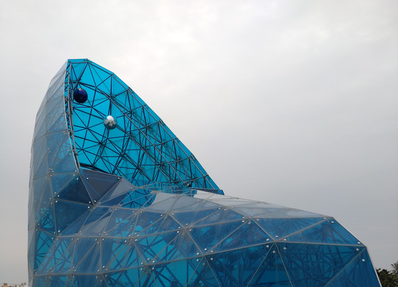 這座公園的中心處為一座池塘,池塘中央設有以 320 片藍色玻璃打造而成的巨型高跟鞋結構。