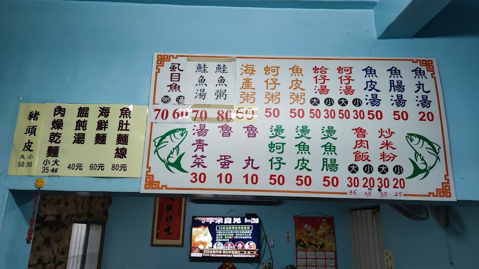 一進店裡就聞到一股奇怪的味道,後來餐點上齊後,吃了一口魚丸原本是魚丸的味道,味道也太濃郁了,女兒點了海鮮粥跟魚皮,海鮮粥料還算可以,鹹淡適中,魚皮川燙後老闆又淋上魯汁,導致原本想吃原味的我們有些失望打槍,我點了炒米粉跟魚丸湯跟兩個魯蛋,炒米粉一般,魚丸湯魚丸咬下有彈性還不錯,魯蛋雖然滷的有入味,應該是來回滷上好多天有點鹹