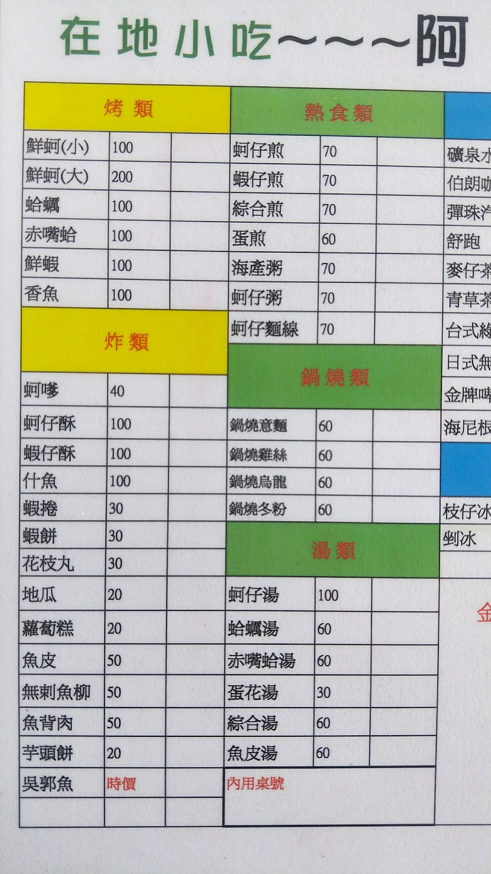 2024最新在地推薦餐廳的菜單_阿明哥蚵仔煎烤鲜蚵的菜單、圖片