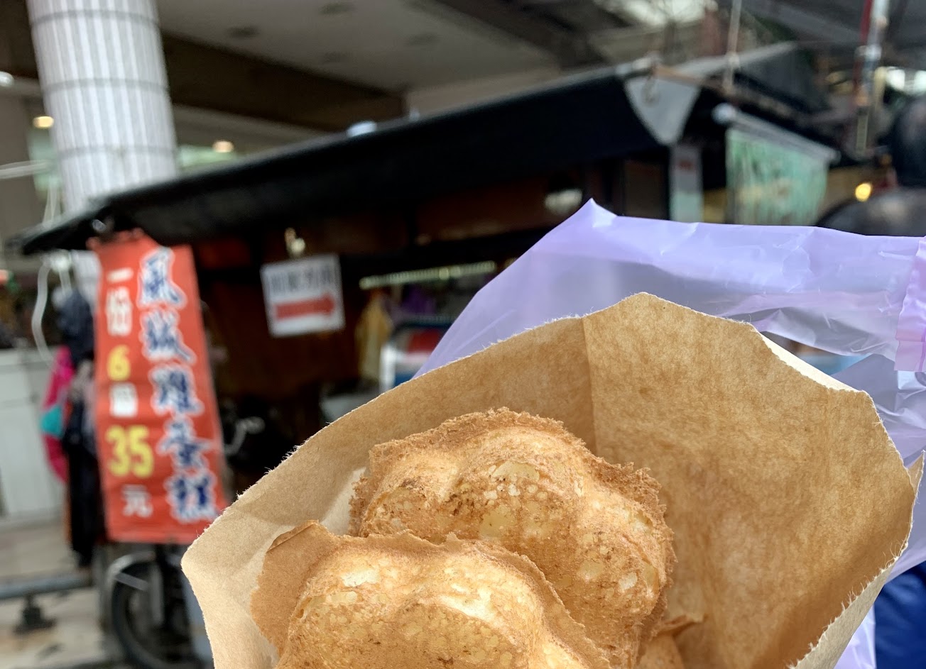 每次來市場必買,古早味的蛋白霜雞蛋糕,趁熱好吃,冷了會軟掉