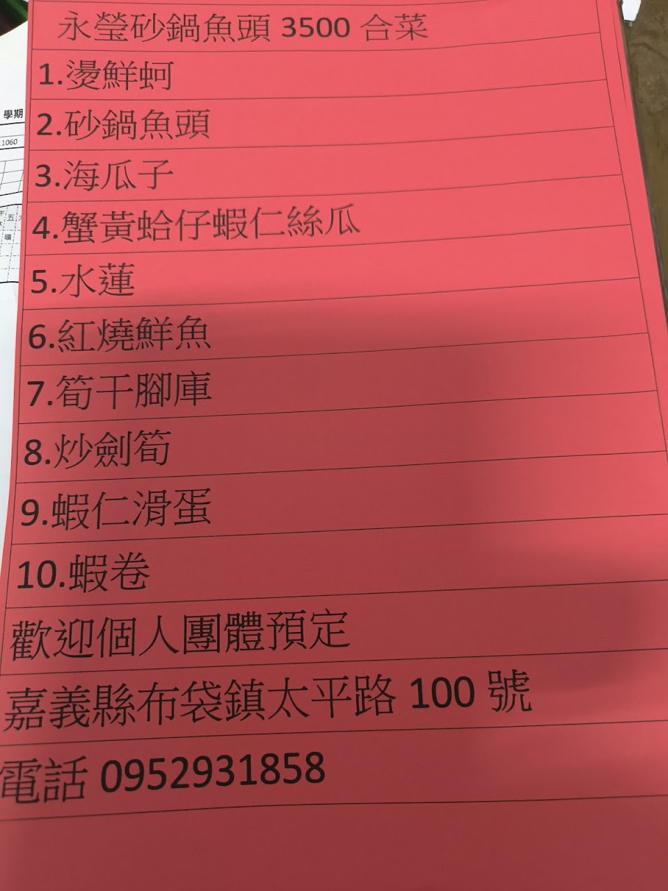 2024最新在地推薦餐廳的菜單_永瑩砂鍋魚頭的菜單、圖片
