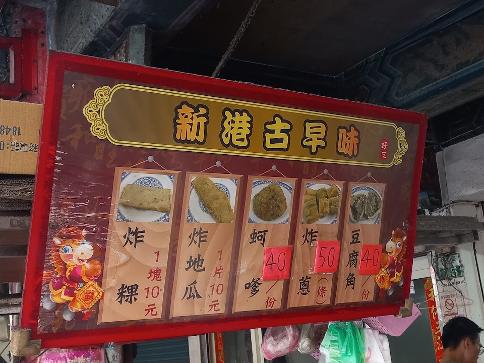 新港鴨肉羹旁的新港古早味炸物必點 炸粿、炸地瓜、蚵嗲、炸蔥、豆腐角