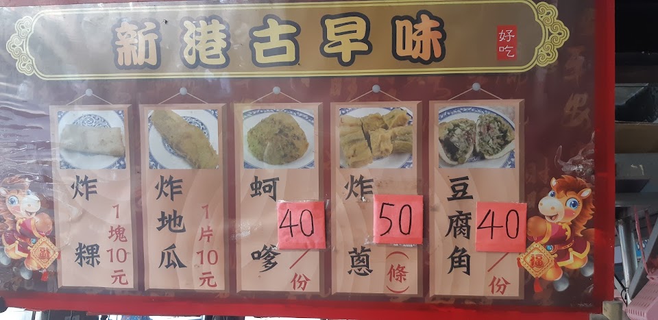 新港鴨肉羹旁的新港古早味炸物必點 炸粿、炸地瓜、蚵嗲、炸蔥、豆腐角 通通來各1 便宜又好吃 不會太油膩