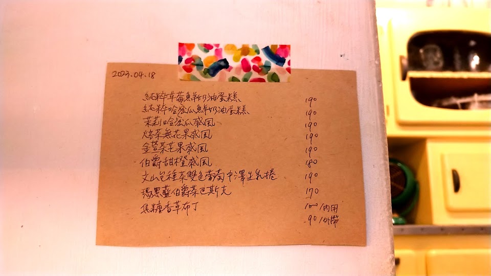 店家的整體氛圍很棒,使用許多老物打造復古感,牆上也貼了幾張手寫的海報,有點微型展廳的錯覺,在許多小地方都能感受到店家的用心,像是每日手寫的甜點菜單,及洗手台旁提供的非一次性擦手巾。