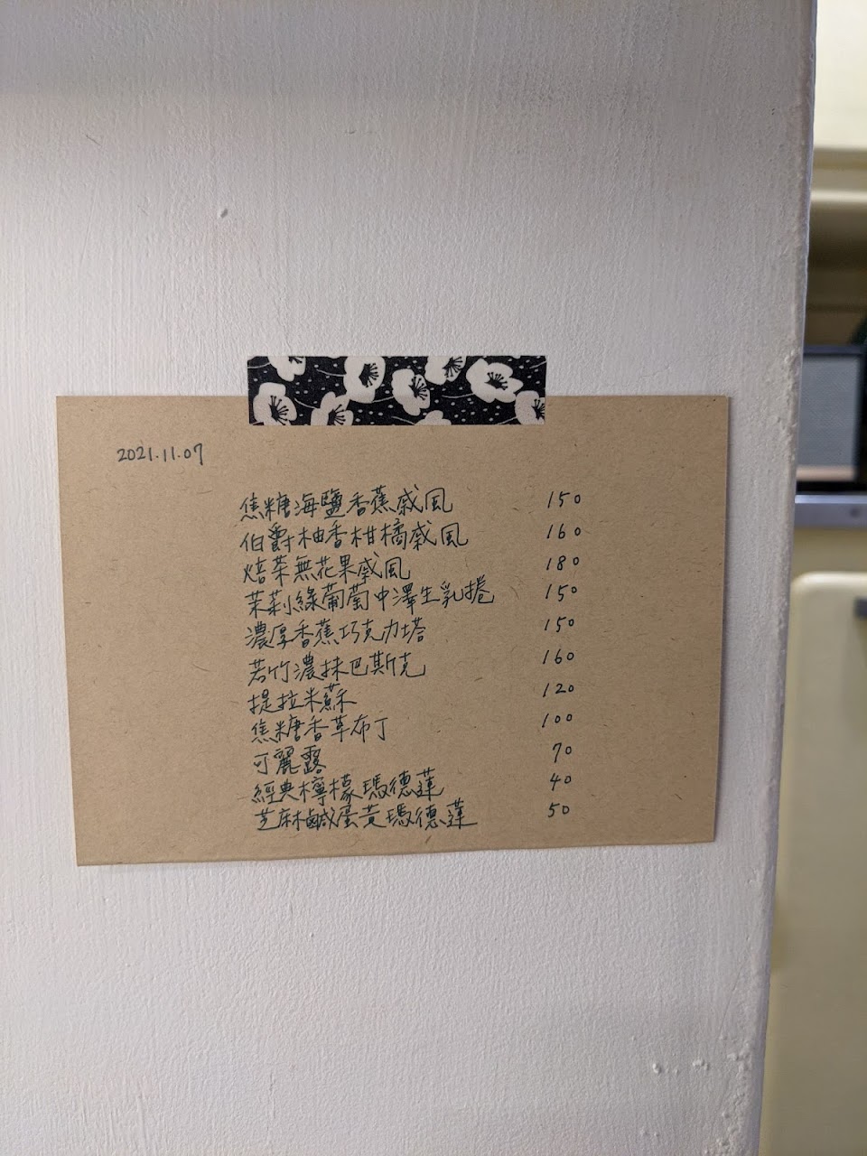 每日甜點不一樣,都會貼在蛋糕櫃旁的柱子上喔!