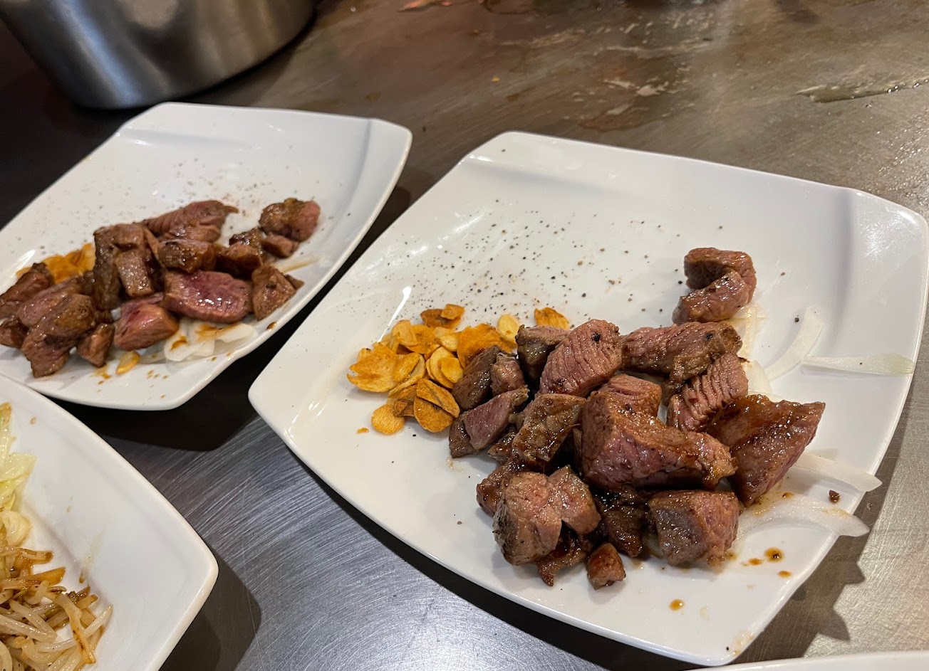 現場只有一位主廚掌勺,雖然有一位配菜助手但是鐵板燒的空台面卻未無即時清理,感覺食物的衛生有待改進,排煙功能也很差,一進去就很大的油煙味,櫃台要兼外場工作雖然有點辛苦,但他仍然很盡責的招呼著客人這是唯一值得讚賞的,今天點了 一份雙人套餐$900一份鱈魚排$240,因為是假日座位已滿台,主廚一人掌杓確實很辛苦,但是每道菜做完卻不見他清理檯面,只是用板勺清除掉菜渣,就開始烹調下一道菜,不知道雞/豬/魚蝦會不會竄味,一開始進餐,我就後悔點了那道雙人套餐,因為物非所值,牛排切成小塊也只有約十幾塊左右,魚排很腥,薄薄的 一片,煎的時間不夠吃起來軟爛的感覺,看著滿滿的 一盤,結果旁邊搭配著豆腐,蝦子也很腥應該是食材不夠新鮮吧,餐點中吃完的是洋蔥炒豬肉和牛排,味道尚可,3人都覺得很掃興也都沒吃飽,口內殘留的食物味道也很不舒服,早早就結束用餐了,出門後大家都同意去吃點冰品清一清味覺,這是我在桃園用餐口感最糟糕的一次經驗
