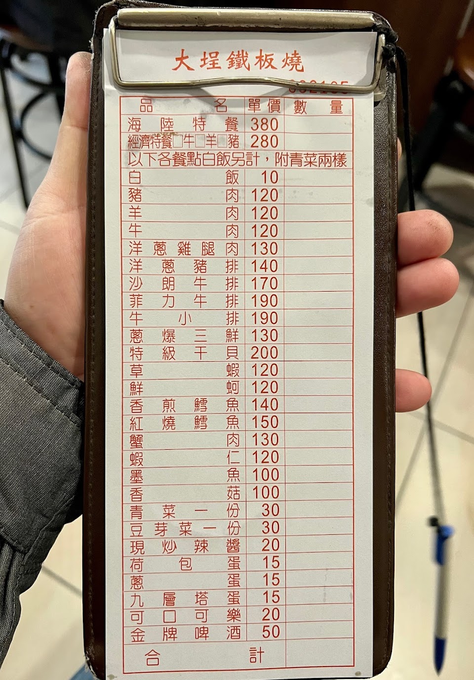 2024最新在地推薦餐廳的菜單_大埕平價鐵板燒的菜單、圖片