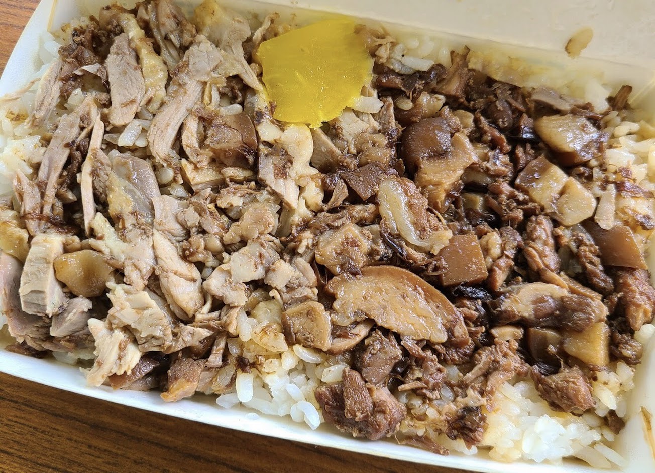 當天正值中午用餐時間許多當地人排隊購買,等候了一下子,觀察到店家不會為了趕著出菜而隨意處理餐點。飯盒的四個角落店家都細心的重複淋上滷汁,飯盒內的每一口飯都吃得到鹹、香、油,鴨肉軟嫩仍保有口感,滷肉則是入口即化,每一口都是滿足。