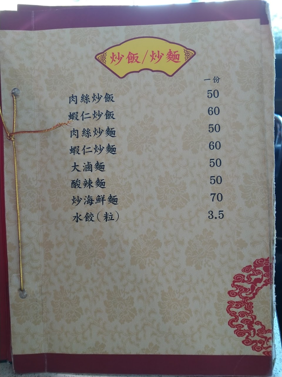 2.這份菜單應該不是最新的,例如滑蛋蝦仁小盤現在已經漲到120元。