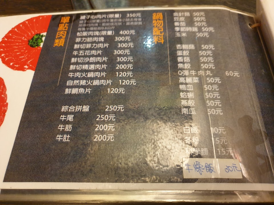 湯頭肉香十足單純順口,現涮牛肉新鮮軟嫩不柴不腥。牛舌牛肚牛肉片牛肉塊都非常好吃。店家親切。期待再訪嘉義品嚐。