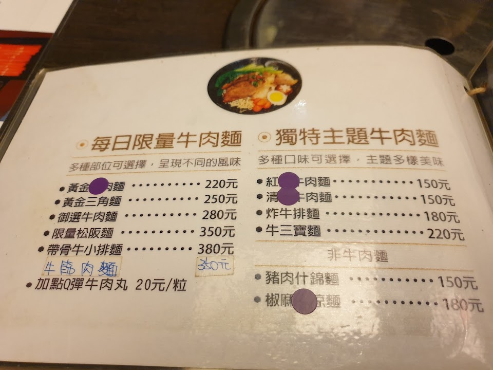 因為本身是肉品供應商,所以牛肉品質很好,餐點也很好吃,原本我小孩覺得這邊的牛肉麵是最棒的~But,2022改了新菜單後價位提高很多,原本150的牛肉麵變成280起跳,但選項也變少了,就再也沒去過了