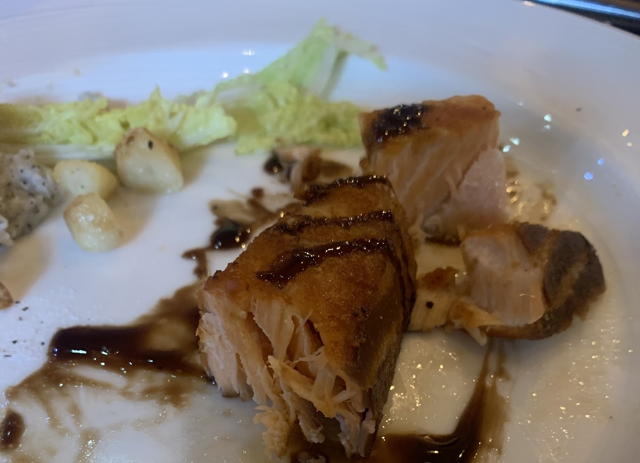 1.從前菜開始酥炸黃金但建議不要炸物不要泡在濕番茄上,整體吃起來炸物軟爛,底部番茄也調味的不是很好,炙燒旗魚上桌時也最好切片,一整塊上來真的相當沒有美感。