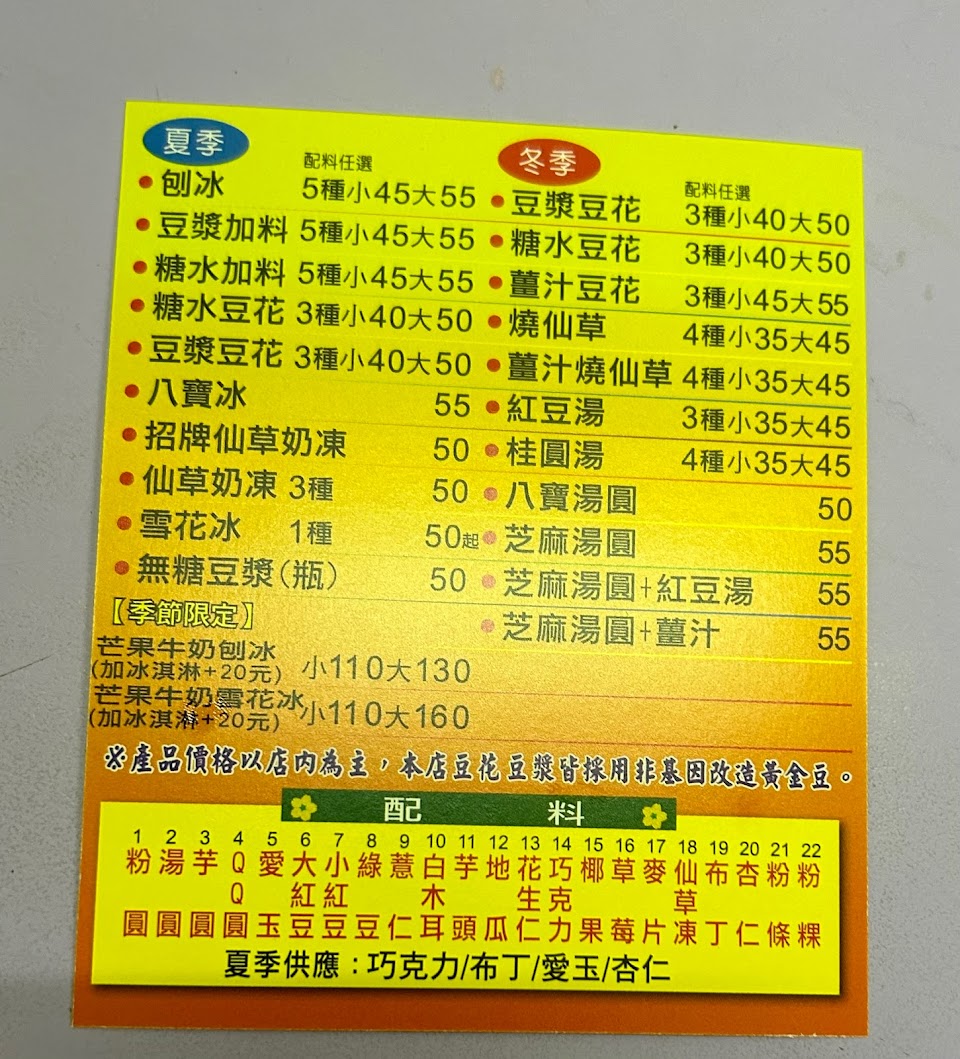 豆花好吃,不會粉粉爛爛的的,配料也不錯