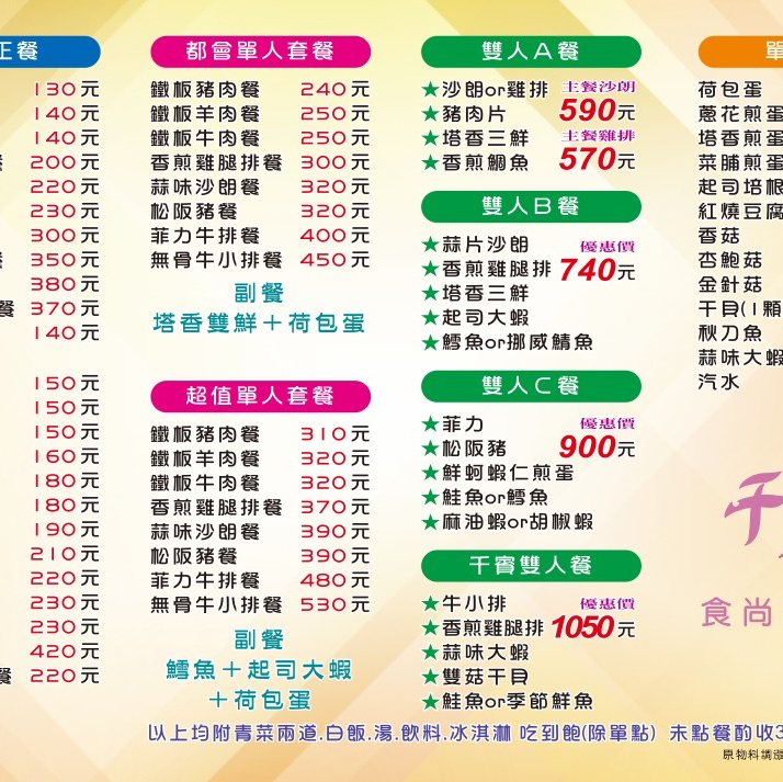 2024最新在地推薦餐廳的菜單_千賓鐵板燒的菜單、圖片