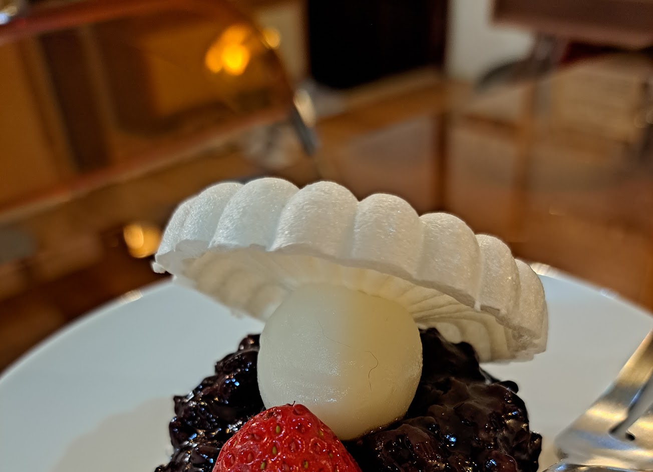 本來以為甜點咖啡是附設項目,結果出乎意料地好吃,草莓多汁又不酸,布丁綿密又紮實,最中餅很道地,柚子氣泡飲酸甜適中,非常讓人驚艷。