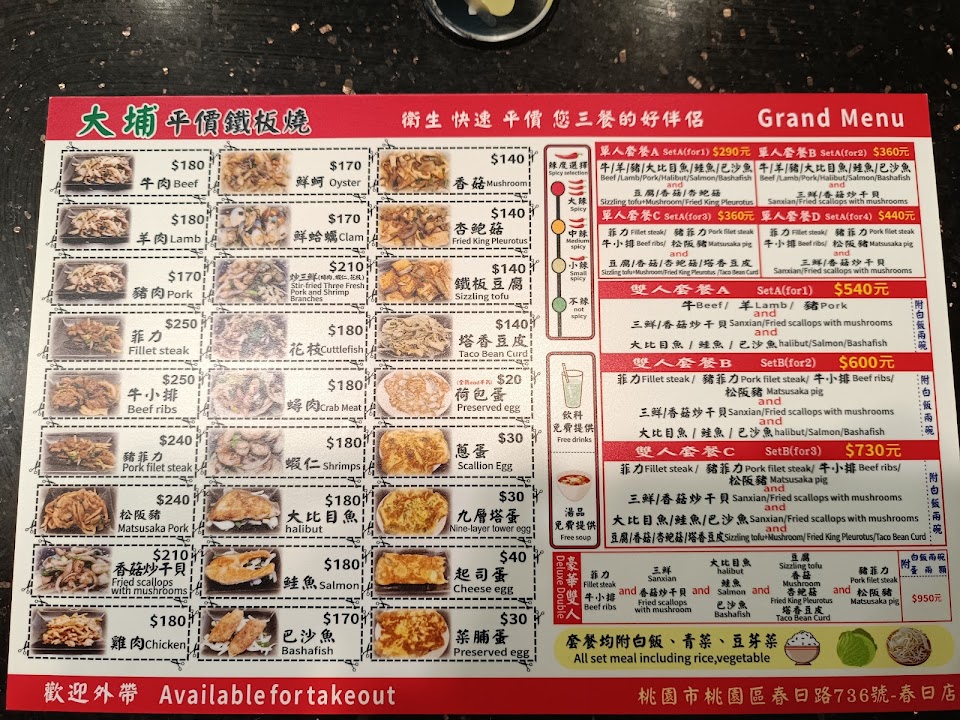 2024最新在地推薦餐廳的菜單_大埔鐵板燒 春日店的菜單、圖片