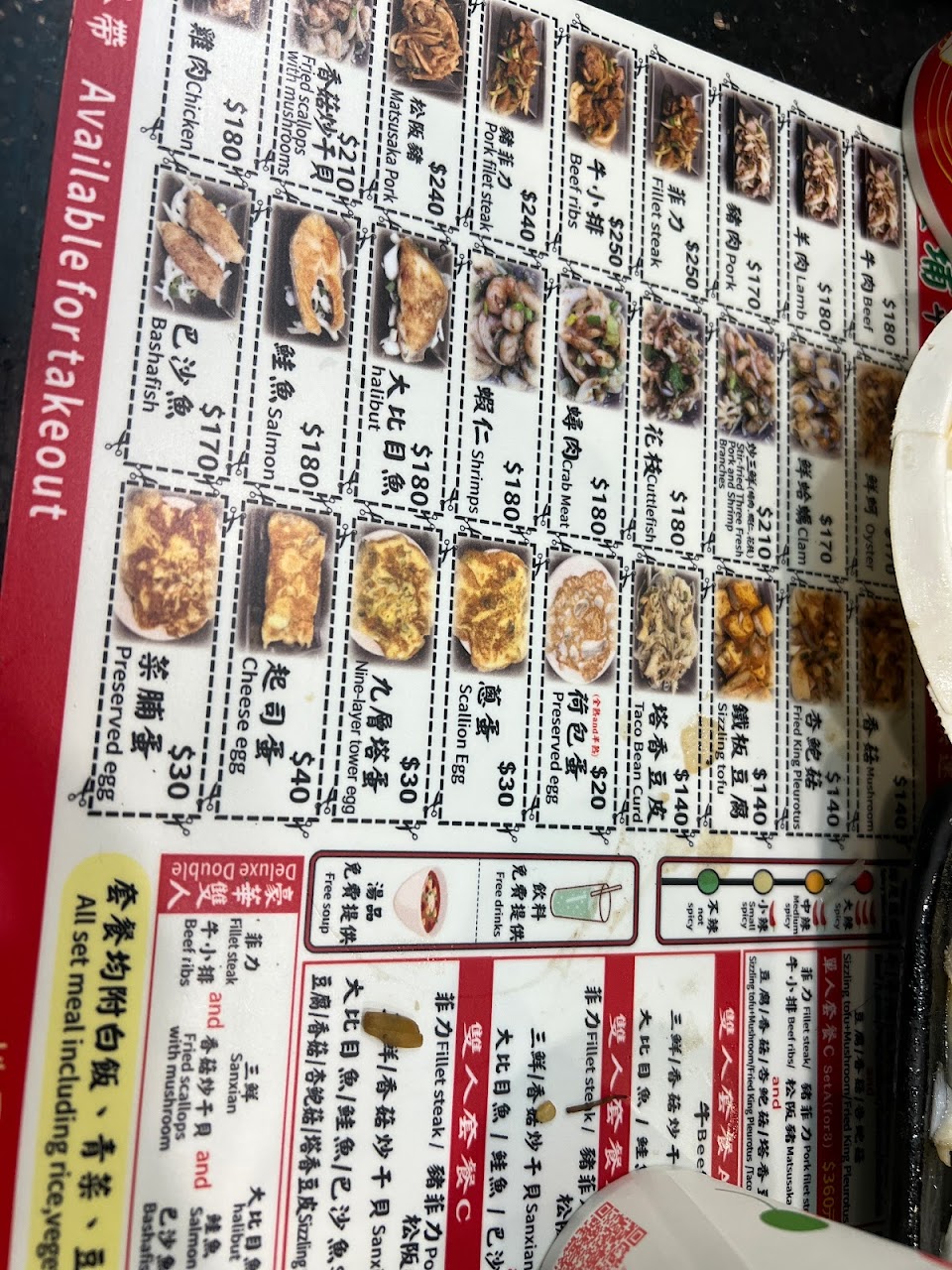 工作人員很友好,我是凌晨2.30來的,關門前他們仍然很友好,裡面有廁所,有洗手池,無限量飲料,還有湯,電話訂購。加上雞蛋用完了原價320台幣我覺得,