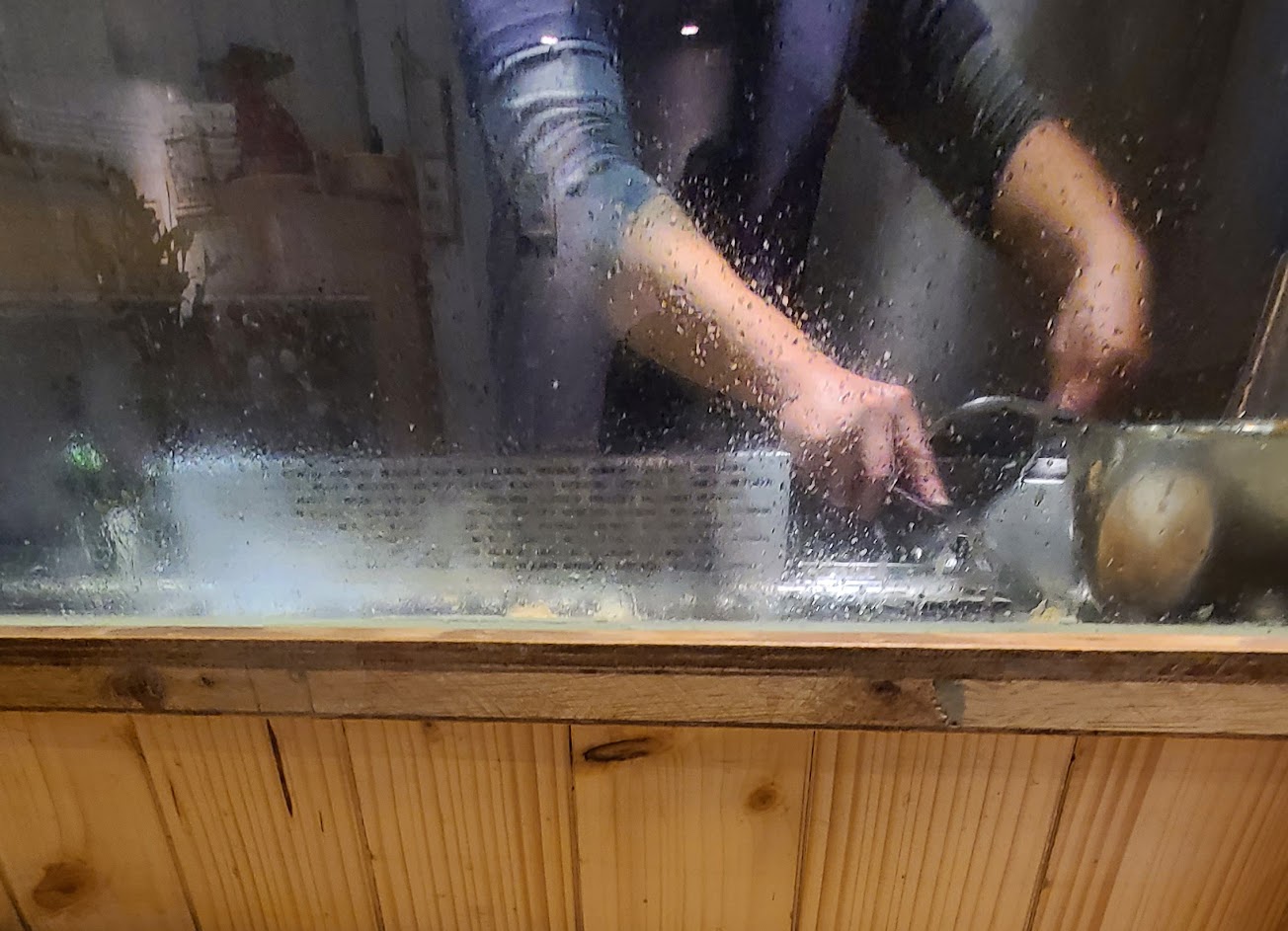 生意很好 平日晚餐太晚來也要排隊(座位不多) 餐點就是中規中舉的鐵板燒 廚師會把所有的菜放在碗裡 跟一般的鐵板燒方式不太一樣
