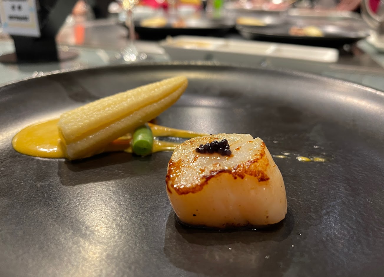 每道餐點皆美味。干貝鮮甜多汁,好吃。生蠔全熟也很有海味。菲力牛肉很有汁。