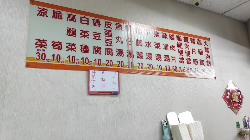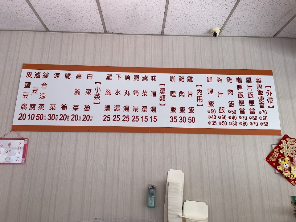 小菜類 脆筍子稍微鹹了點 口感佳 滷白菜 不是滷200年化掉的那種 滷豆腐 一塊10元 綿密口感不死鹹 另外人人必點的是味增湯 雞肉飯 稍偏鹹 氣味普通 還可以