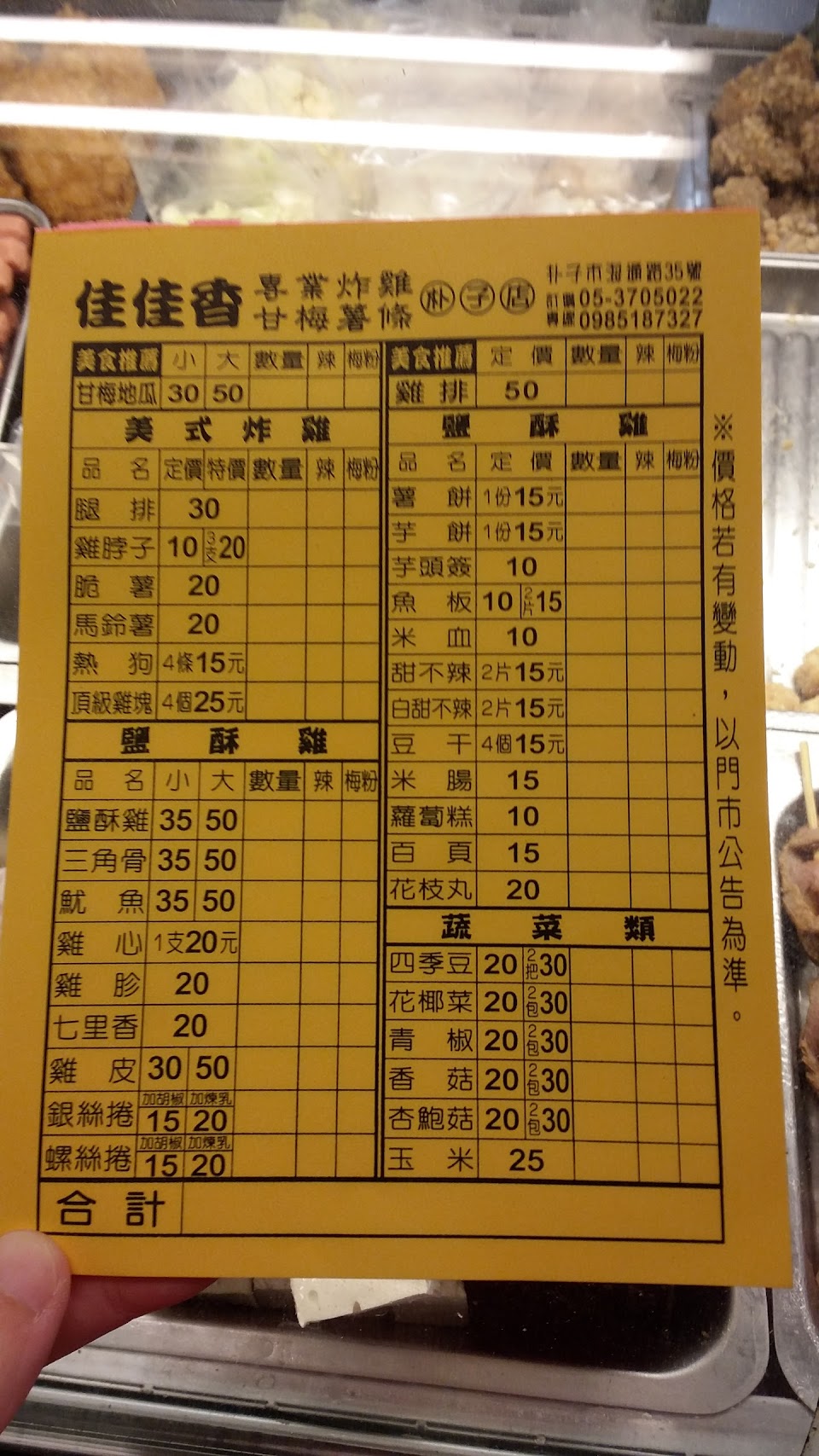 2024最新在地推薦餐廳的菜單_朴子佳佳香炸雞的菜單、圖片