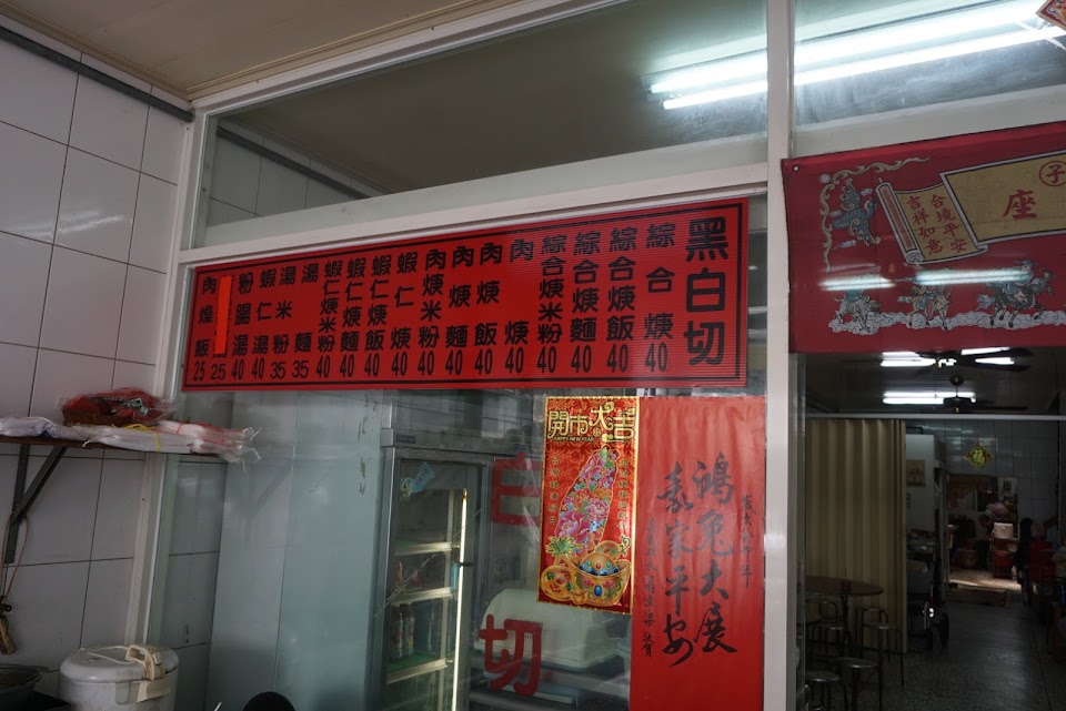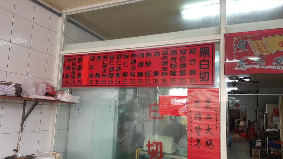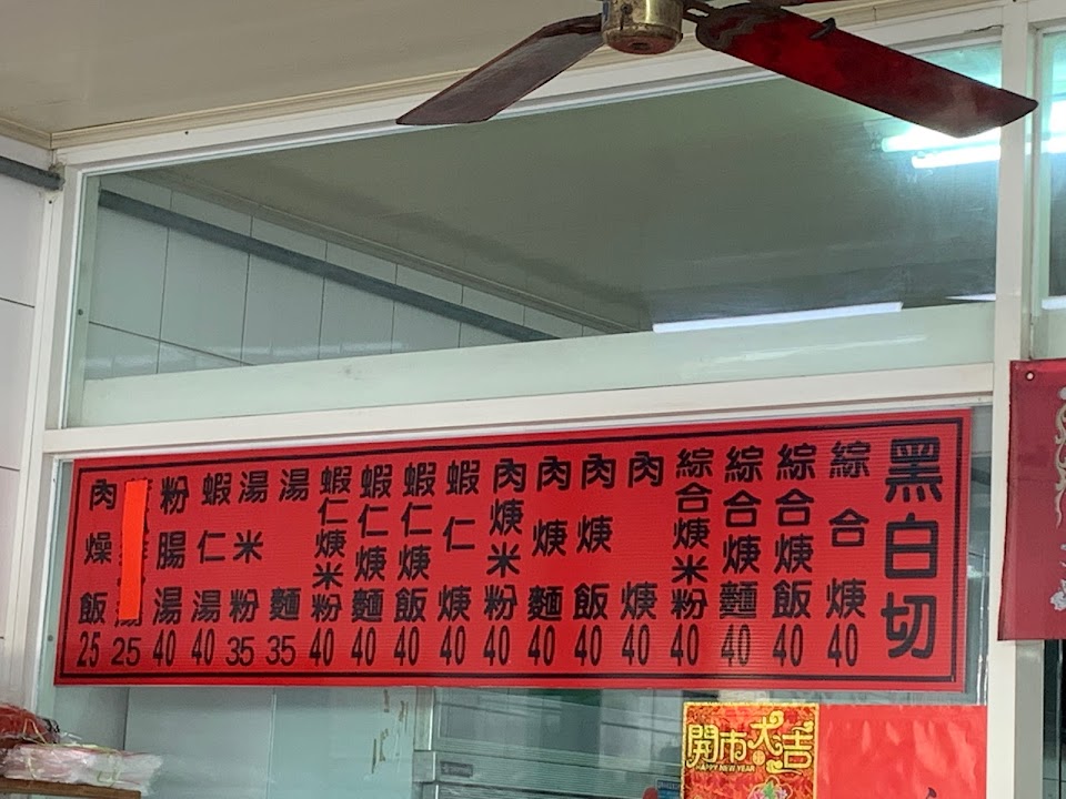 老闆沒笑容 電視也不給看 , 綜合羹麵味道較為清淡不過有蝦仁有肉羹料好實在價格也親民,滷熟肉系列看起來沒有光澤,好像冰很久的樣子,肉粿是溫的表皮不酥脆口感平平,黑香腸還算不錯,肉香酒香明顯,至於其他切料就平凡無奇。